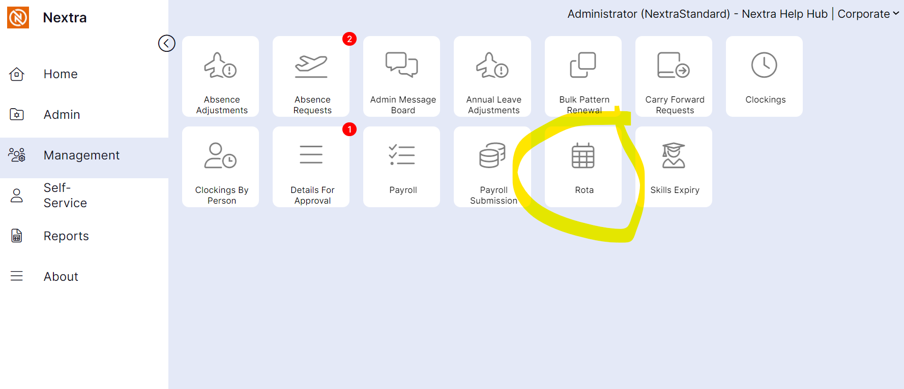 Select the Rota tile from the home screen.