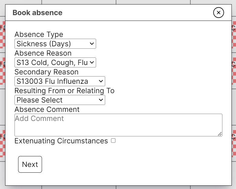 Select the secondary reason from the drop-down. If required - enter a comment in the Absence comment field.
