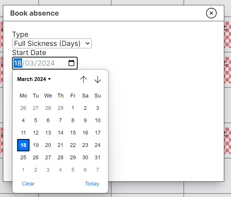 Book absences including sickness and annual leave from the rota screen