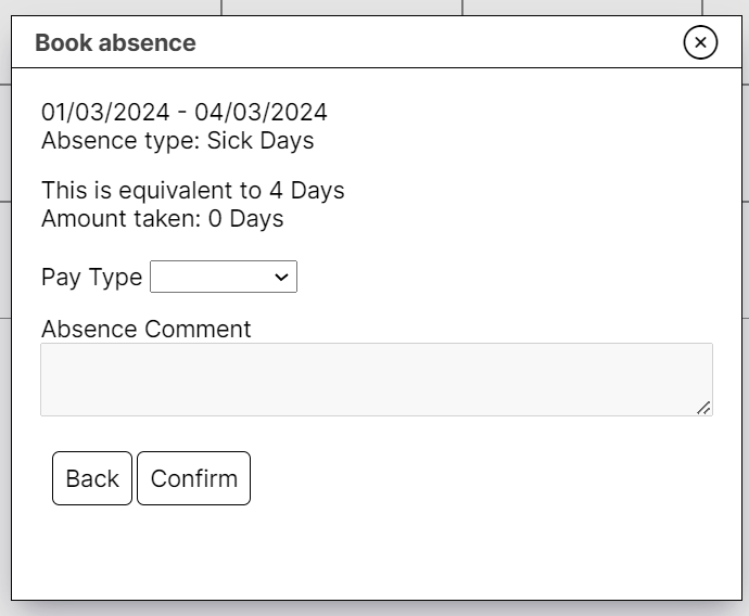 To record a sickness absence, select the sickness category from the absence type drop-down box.