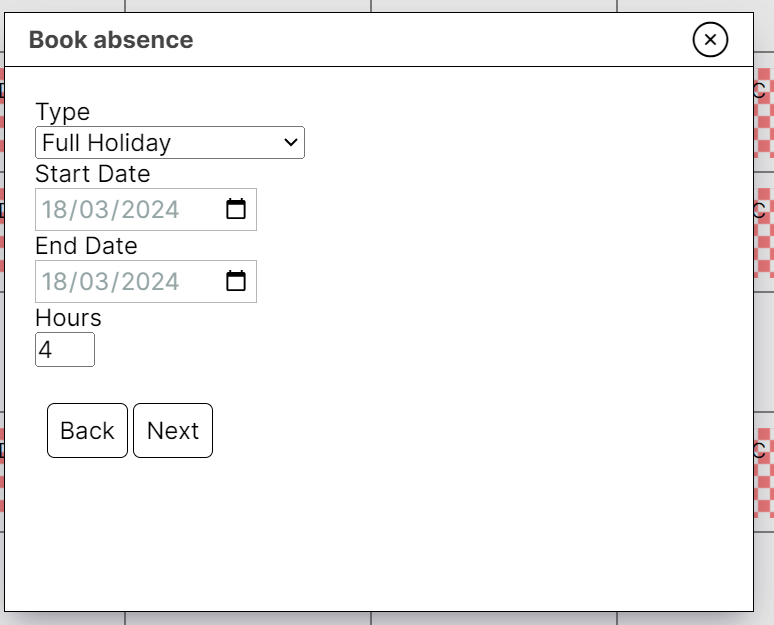 Select either ‘full holiday’ if the absence is for a full day, or ‘part holiday’ absence is for part of a day.